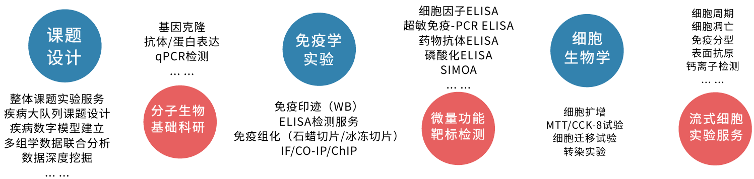 分子生物學及細胞生物學實驗服務——從課題設計,到分子生物基礎科研,從免疫學實驗,再到細胞生物學實驗,我們提供包括課題設計,疾病數學模型建立,多組學數據聯合分析在內的基礎實驗服務。
